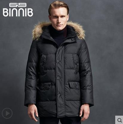 > binnib男士款冬装爸爸装商务中长款加厚户外季中老年人羽绒服外套