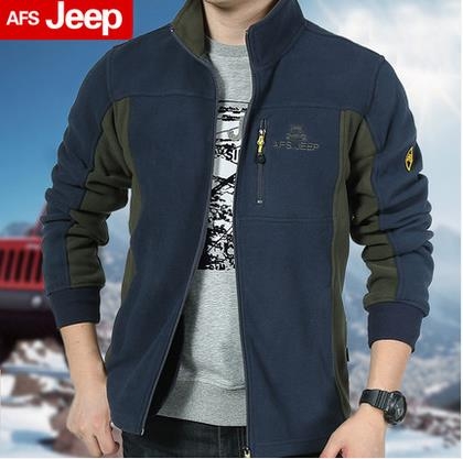 > AFS JEEP新款男装冬装外套立领抓绒开衫加厚加绒保暖户外卫衣男